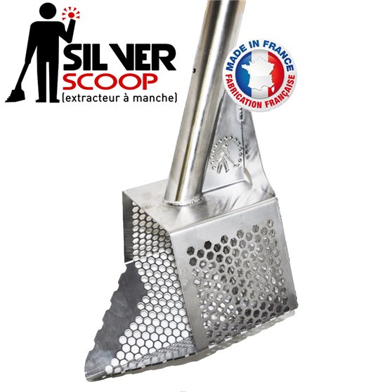 Le souci est que pour se procurer cet outil il faut le commander aux Etats-unis ou en Angleterre et qu'il vous en coutera 160 à 180 euros. Tout ceci nous a amené à concevoir avec l’aide de prospecteurs notre propre gamate pour le marché européen. Résistante et à l’épreuve de la corrosion car entièrement en inox 2mm, notre gamate est fabriquée en France. Nous avons testé et fabriqué plus de 10 modèles avant de parvenir à ce résultat qui incorpore de nombreux points forts par rapport aux extracteurs anglo-saxons (support pied renforcé, dents pour mieux creuser, tamis facile à dégager...).Notre Silver Scoop est aussi moins chèr puisqu’il ne coûtera que 149 euros (manche non inclus).