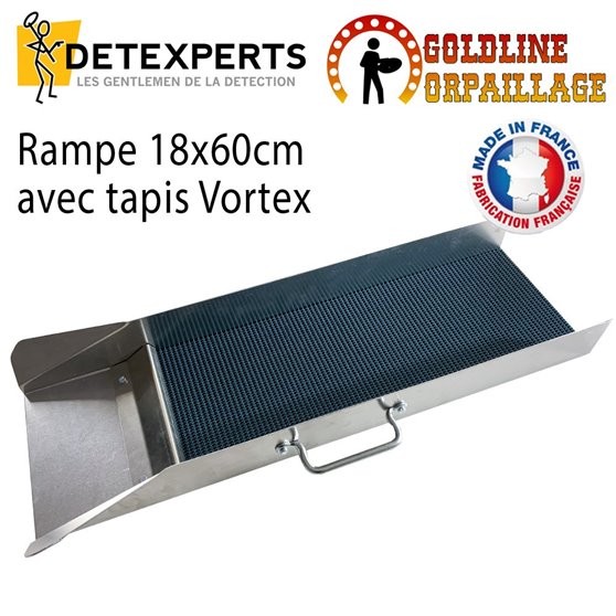 Fabriquée en France et conçue par les orpailleurs de Goldline Orpaillage et le réseau Detexpert, cette rampe de 60cm de longueur par 18cm de largeur est idéale pour la prospection, c'est à dire la recherche de spots. Pour la traitement on lui preferera une rampe de taille supérieure. Equipée d'une poignée, d'un clampe elle accueille un tapis VORTEX et offre un rapport qualité prix imbattable.